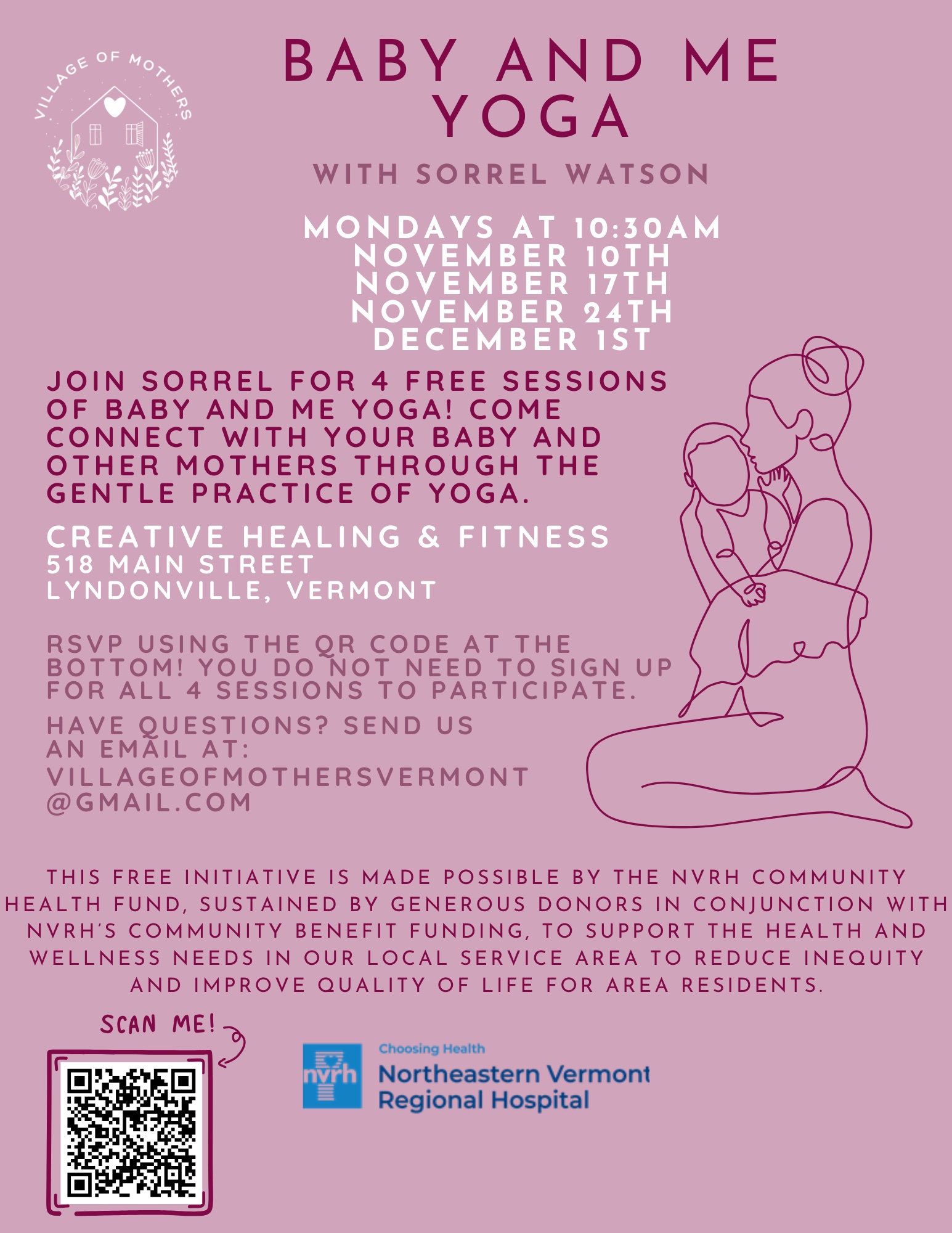 Please RSVP by emailing villageofmothersvermont@gamil.com or scan theQR code in the flier.
